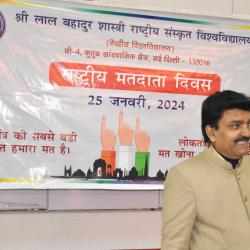 दिनांक 25 जनवरी 2024 को राष्ट्रीय मतदाता दिवस के अवसर पर विश्वविद्यालय प्रांगण में माननीय कुलपति प्रो. मुरलीमनोहर पाठक जी द्वारा आचार्यों, अधिकारियों, कर्मचारियों एवं छात्र- छात्राओं को मतदान के प्रति जागरूक किया एवं राष्ट्रीय मतदाता दिवस पर सभी को 'मतदाता शपथ' दिलाई।